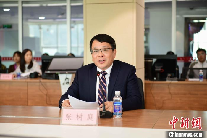 圖為西藏民族大學黨委常委、副校長,中國傳媒大學黨委常委、副校長張樹庭在簽約儀式上講話?!∝暩聛硭?攝