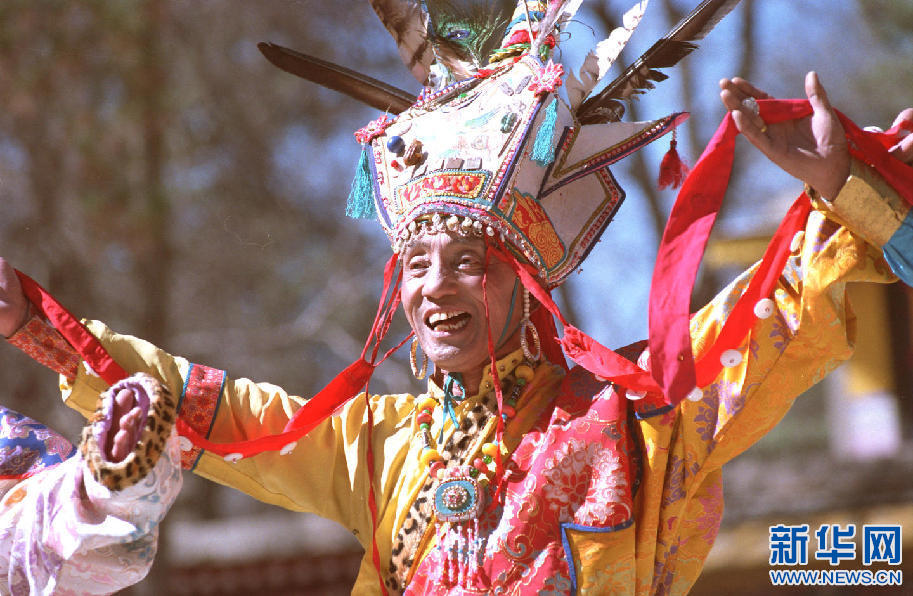 藏族藝術(shù)家土登說(shuō)唱《格薩爾》史詩(shī)。新華社記者 覺(jué)果 攝(1997年11月28日發(fā))