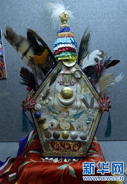 2015年5月17日,在西藏博物館拍攝的格薩爾王說(shuō)唱藝人專用帽子。新華社記者 劉東君 攝