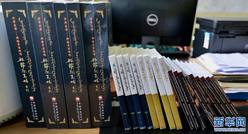 2022年5月30日,圖為已出版的斯塔多吉說(shuō)唱的《格薩爾王傳》系列。新華網(wǎng) 柑丹鴦琦 攝