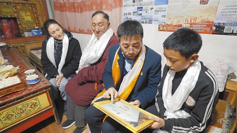沈陽市第九批援藏工作組副領隊、安多縣常務副縣長裴德本來到資助的貧困中學生古扎多吉家中家訪。