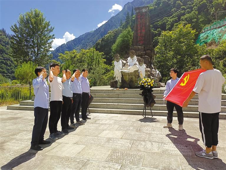 7月1日,中交二公局西藏項(xiàng)目黨支部組織黨員、預(yù)備黨員、入黨積極分子,前往波密紅樓、“川藏線上十英雄”紀(jì)念碑等地開(kāi)展慶祝建黨101周年主題黨日活動(dòng),引導(dǎo)黨員干部自覺(jué)錘煉黨性,增強(qiáng)服務(wù)意識(shí)、感悟初心、傳承使命。 圖為該支部黨員在“川藏線上十英雄”紀(jì)念碑前重溫入黨誓詞。林芝采訪組 攝