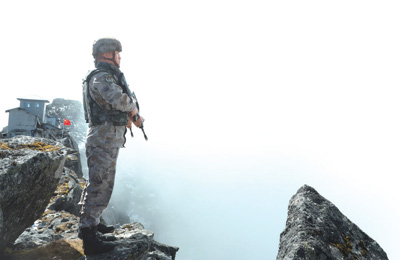 詹娘舍哨所官兵站崗執(zhí)勤。庾永杰攝(人民視覺(jué))