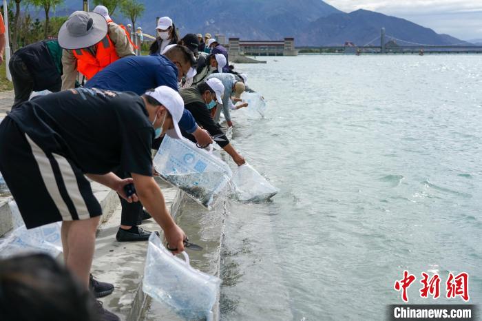 西藏民眾參與增殖放流?!〗w波 攝
