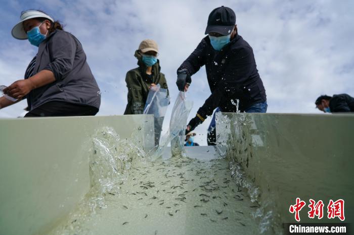 7月12日,2022年西藏特有魚類增殖放流暨放流知識科普活動在拉薩河畔舉行,本次放流的魚苗包含尖裸鯉、拉薩裂尻魚、拉薩裂腹魚、異齒裂腹魚、巨須裂腹魚及雙須葉須魚6種西藏特有魚類,總計215萬尾,放流數(shù)量為近年之最。