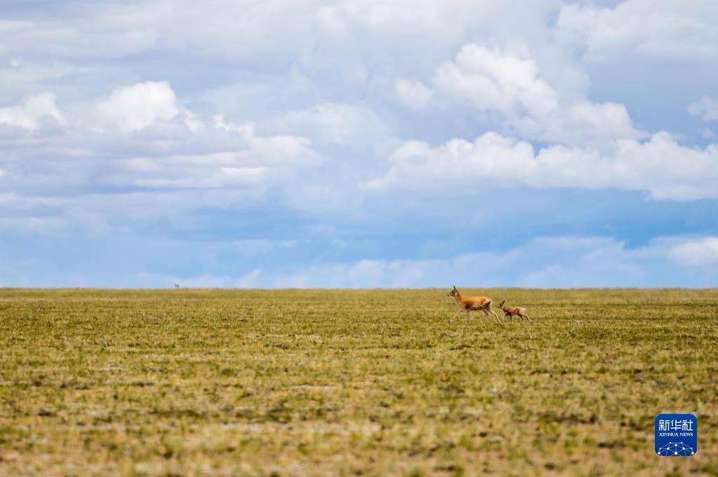 這是在羌塘國家級自然保護區(qū)內拍攝的藏羚羊(7月11日攝)。新華社記者 周荻瀟 攝