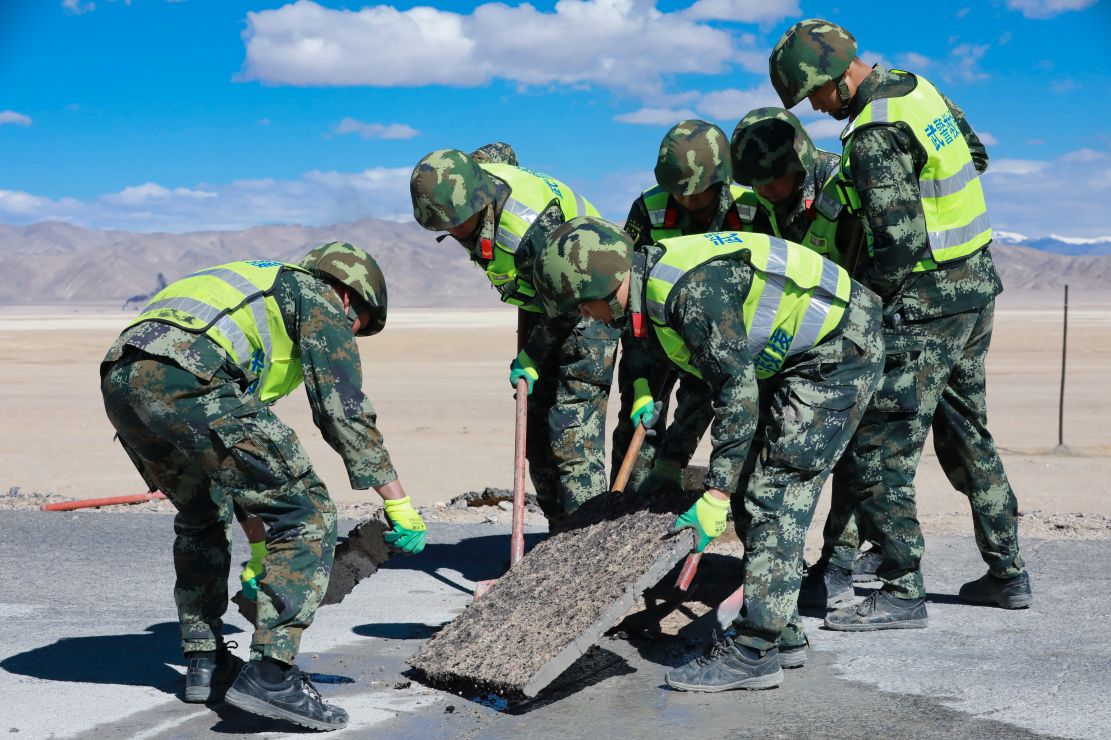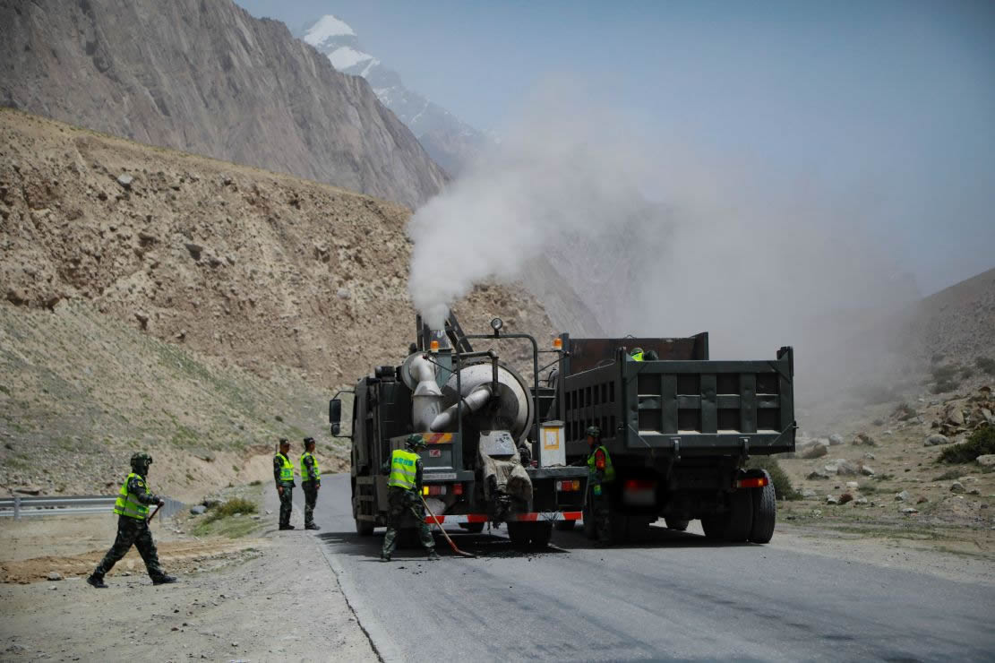 對此,該支隊充分利用新疆當季天氣較好時機,在新藏公路新疆段600多公里道路進行病害集中治理,官兵們分別在庫地達坂、麻扎達坂、黑卡子達坂、奇臺達坂等多個病害點展開工作。