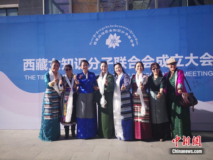 2019年,邊巴拉姆(左三)參與成立西藏自治區(qū)女知識分子聯(lián)合會,并擔(dān)任首任會長。受訪者供圖