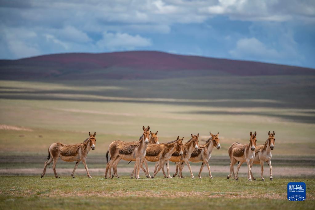 雙湖縣境內(nèi)悠閑的藏野驢(7月17日攝)。新華社記者 孫非 攝