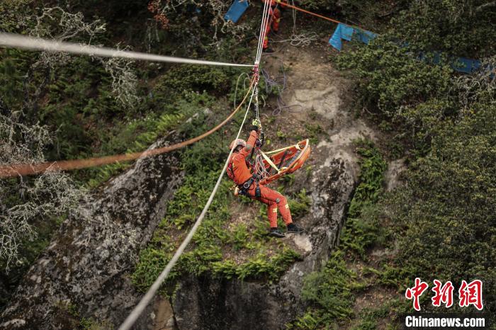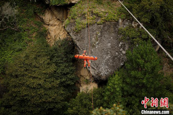 據(jù)悉,垂直崖壁救援是山岳事故救援行動中最難、最危險的科目之一,要求救援隊員在陡峭的崖壁上,尋找保護點、清理崖壁、建立保護站,利用繩索技術,采用垂直提拉系統(tǒng)對墜落谷底的被困人員實施營救。