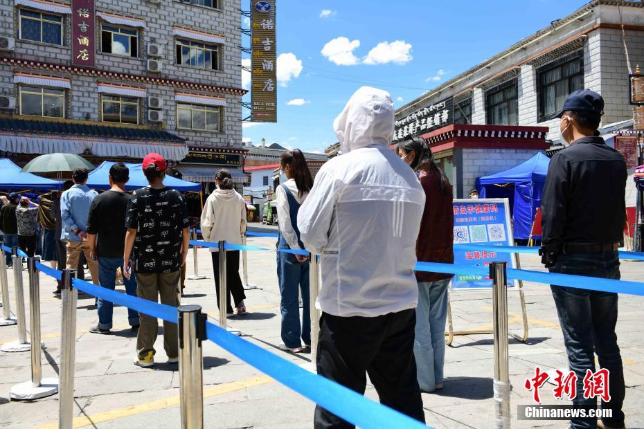 8月9日,西藏拉薩,市民在城關(guān)區(qū)八廓街道魯固社區(qū)的核酸檢測現(xiàn)場排隊(duì)進(jìn)行核酸檢測。當(dāng)前,西藏拉薩市設(shè)置545個(gè)核酸檢測點(diǎn)開展全員核酸檢測。 中新社記者 貢嘎來松 攝