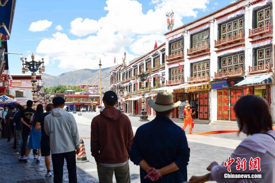 8月9日,西藏拉薩,市民在城關(guān)區(qū)八廓街道的核酸檢測現(xiàn)場排隊(duì)進(jìn)行核酸檢測。當(dāng)前,西藏拉薩市設(shè)置545個(gè)核酸檢測點(diǎn)開展全員核酸檢測。 中新社記者 貢嘎來松 攝