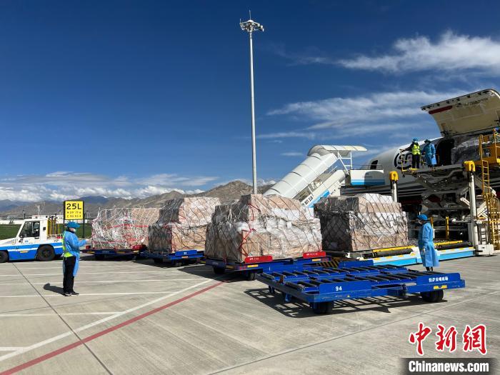連日來(lái),有大量醫(yī)療物資通過(guò)航空渠道快速運(yùn)抵拉薩貢嘎機(jī)場(chǎng)。據(jù)統(tǒng)計(jì),僅8月9日一天,拉薩貢嘎機(jī)場(chǎng)保障并交付了近40000公斤醫(yī)療物資。