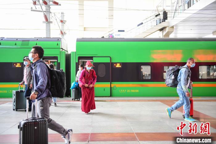 圖為8月11日,旅客乘坐火車。 貢嘎來松 攝
