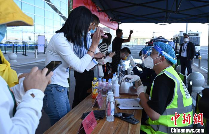 拉薩貢嘎機(jī)場(chǎng)航站樓外,設(shè)置了礦泉水免費(fèi)領(lǐng)取、各航司的機(jī)票退改簽處以及問詢處。記者留意到,一處核酸檢測(cè)點(diǎn),未持有48小時(shí)內(nèi)核酸檢測(cè)陰性證明的旅客正排隊(duì)檢測(cè)。