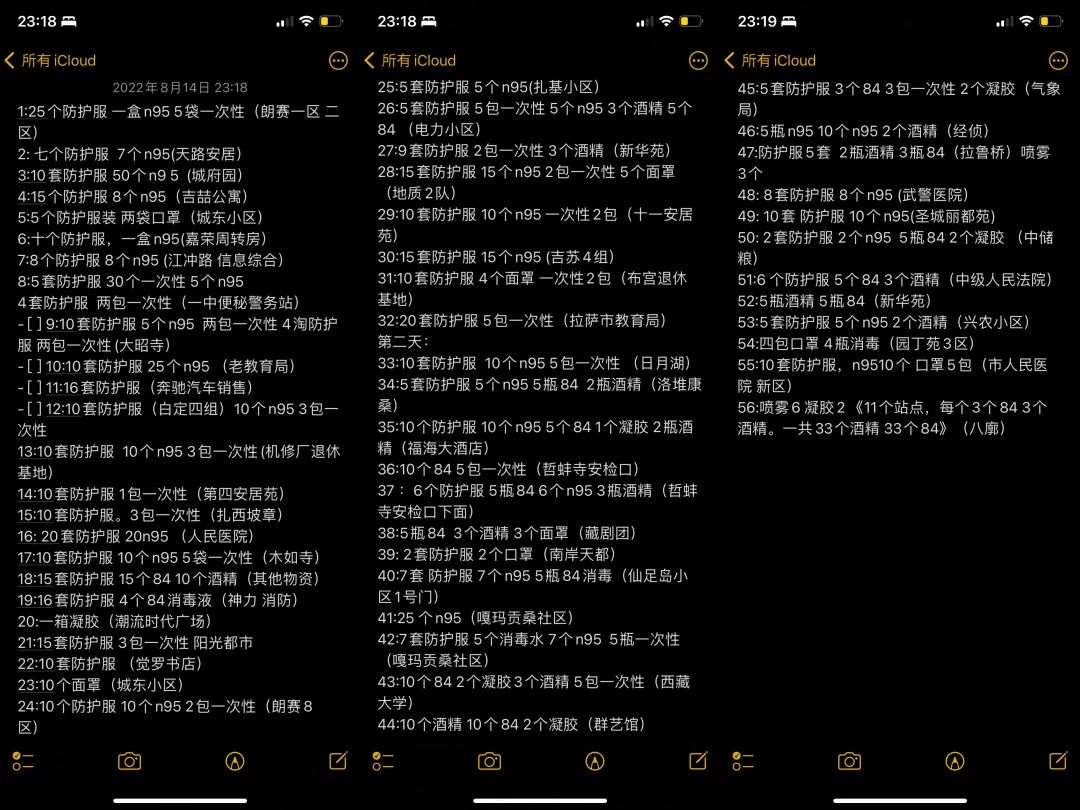 8月14日的凌晨,疲憊不堪的貢秋丁達和西繞拉翁正準備在車里休息,這時電話鈴聲響了,“你好,是貢秋丁達嗎?剛才接到通知,嘠瑪貢桑街道北社區(qū)需要運輸防護服10套,N95口罩10個?!薄笆盏剑 必暻锒∵_回復(fù)道。強忍著身體的疲憊,貢秋丁達和西繞拉翁重新打起了精神,向著目的地再次進發(fā)。