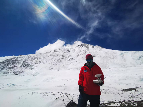 高壇光手持無人機(jī)(遙控器)于珠穆朗瑪峰上留影