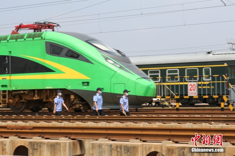 8月17日,北京車輛段北京西庫(kù)檢車間內(nèi),北京電務(wù)段檢修人員對(duì)時(shí)速160公里動(dòng)力集中型復(fù)興號(hào)動(dòng)車組(俗稱“綠巨人”)的運(yùn)行數(shù)據(jù)進(jìn)行檢查。這里是京津冀地區(qū)唯一的“綠巨人”檢修維修基地,肩負(fù)著18列共計(jì)261節(jié)車輛的檢修任務(wù)。隨著暑運(yùn)逐漸迎來返校返程高峰,檢修人員也在加班加點(diǎn)為列車做好體檢工作,確保運(yùn)行安全。 中新社記者 賈天勇 攝
