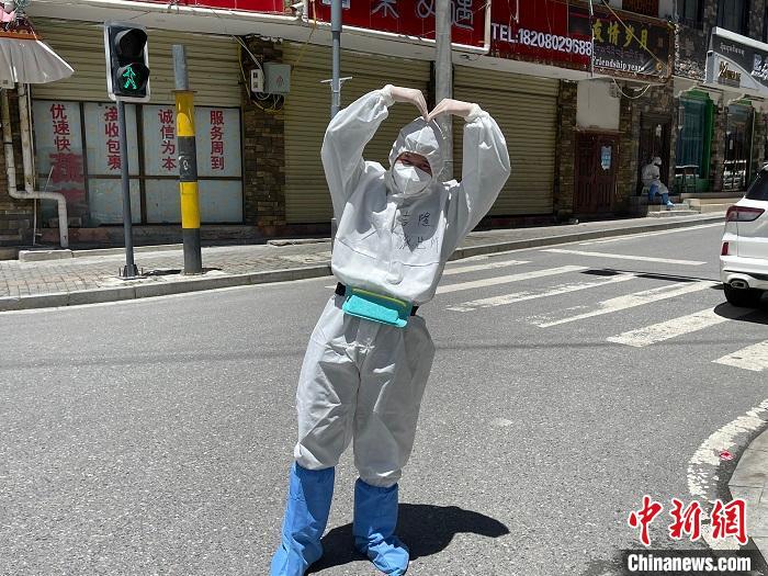 民警賀東在做好自身防護的前提下不停巡邏排查,一轉就是8個小時。他為民眾、游客及工人聯(lián)系購買生活物資、煤氣等。汗水浸濕在口罩里,不到一會,“大白”就能“喝”到自己的汗水。
