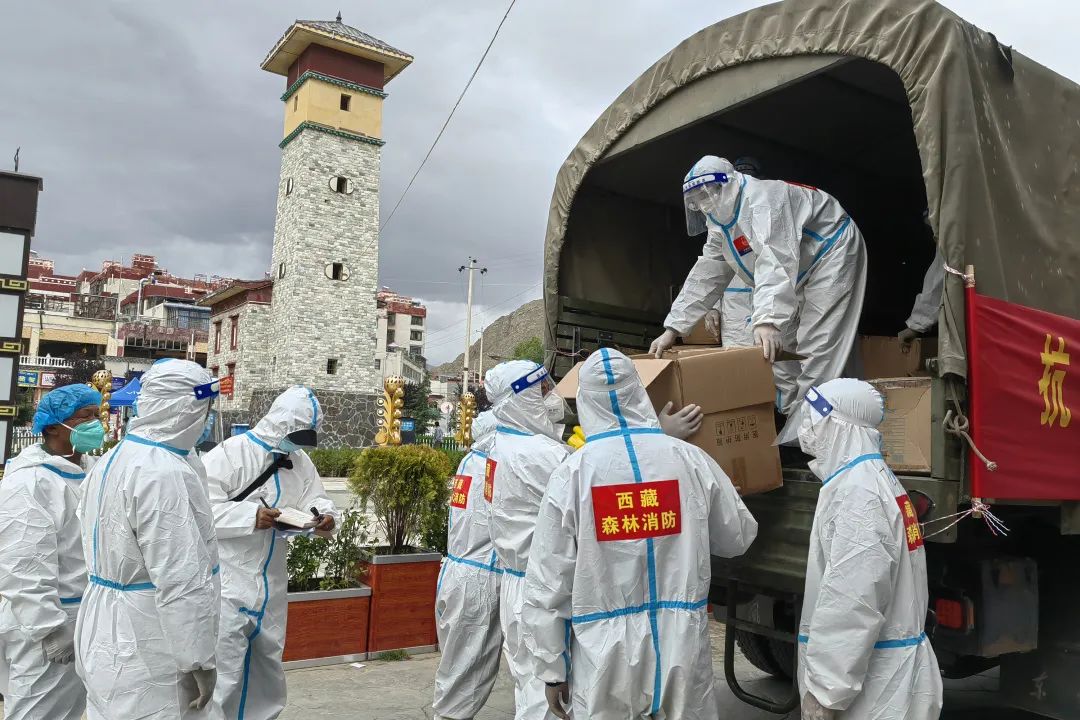 據(jù)那曲市森林消防大隊代理大隊長孔特特介紹:疫情發(fā)生后,駐防分隊迅速成立“西藏森林消防新型冠狀病毒疫情防控黨員先鋒隊”,在山南市各社區(qū)、小區(qū)等重點區(qū)域為公安和醫(yī)護人員搭建生活帳篷;向山南市火車站、小區(qū)、居民樓、菜市場、村組等41個核酸檢測點完成防疫物資配送。