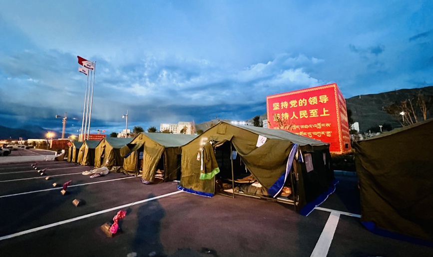 據(jù)介紹,為了盡快解決滯留旅客住宿問題,山南市貢嘎縣有關(guān)部門與機場協(xié)調(diào)劃出停車場南側(cè)區(qū)域,8月20日晚連夜奮戰(zhàn)搭建帳篷,并安排了四名志愿者駐點為旅客服務(wù)?!?0日晚間,我們搭建了8個帳篷,今天又增加了4個帳篷,目前共有12個帳篷?!编u云說。