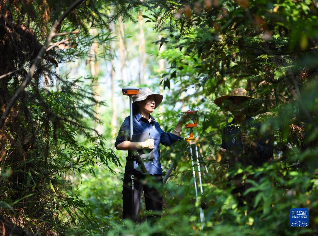 9月22日,白拉曲珍和同事在位于廣東韶關(guān)樂昌市張溪村的生態(tài)監(jiān)測(cè)樣地工作。新華社記者 鄧華 攝