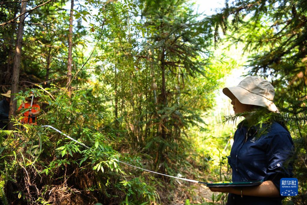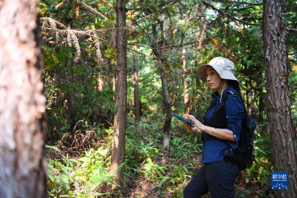 9月22日,白拉曲珍在位于廣東韶關(guān)樂昌市張溪村的生態(tài)監(jiān)測(cè)樣地工作。新華社記者 鄧華 攝