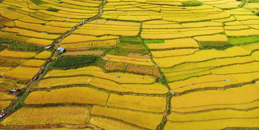 “截至9月22日,日喀則全市已收割農作物89萬畝,占農作物總播種面積的63%以上,秋收整體進度與往年基本一致?!比湛t市政府副秘書長扎西桑旦說。