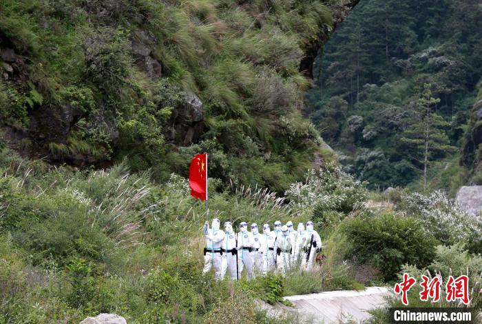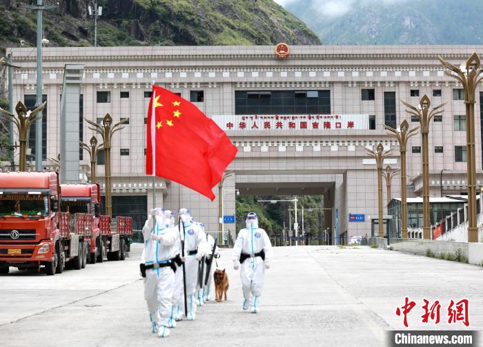 10月1日,駐扎在中尼邊境的吉隆出入境邊防檢查站組織移民管理警察高舉國旗在邊境執(zhí)勤巡邏任務。