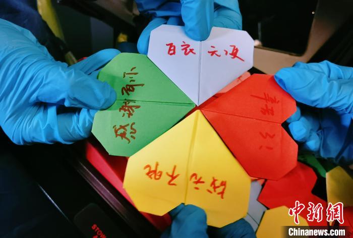 乘務(wù)組向每位醫(yī)療人員送上小國旗,用“你我攜手”“共同抗疫”“缺氧不缺精神”“海拔高境界更高”等標(biāo)語表達(dá)對醫(yī)療隊(duì)員們的崇高敬意。在國慶即將到來之際,醫(yī)療隊(duì)隊(duì)員們紛紛寫下了對祖國的祝福。