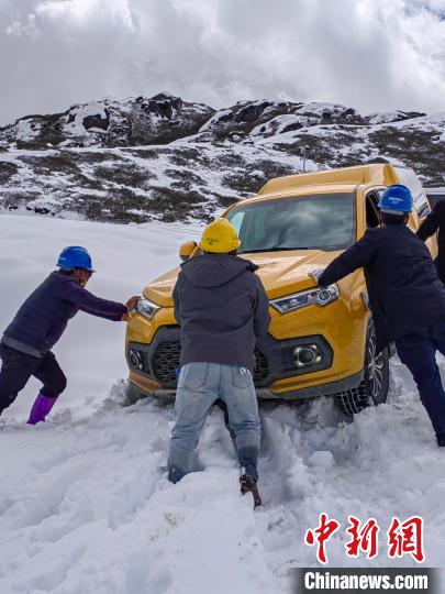 10月27日,錯(cuò)那縣供電公司公司人員在搶修現(xiàn)場(chǎng)推車。次仁央金 攝
