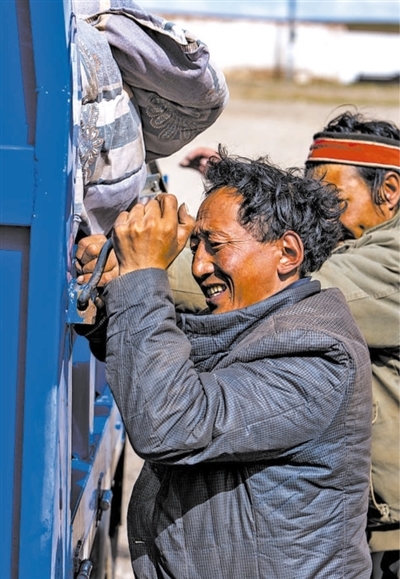 那曲市安多縣幫愛(ài)鄉(xiāng)群眾將家具裝車。