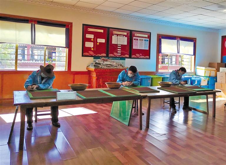 圖為該公司員工正在制作藏香。次珍 記者 裴聰 攝