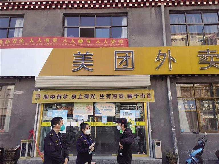 拉薩市市場監(jiān)管局對美團拉薩分公司進行現(xiàn)場指導(dǎo)。圖由 拉薩市市場監(jiān)管局 提供