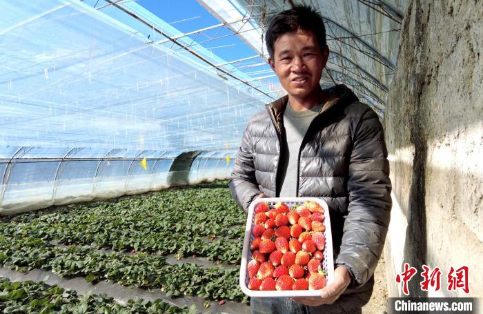 11月25日,西藏拉薩林周縣卡優(yōu)村果農展示剛剛收獲的草莓。 李林 攝