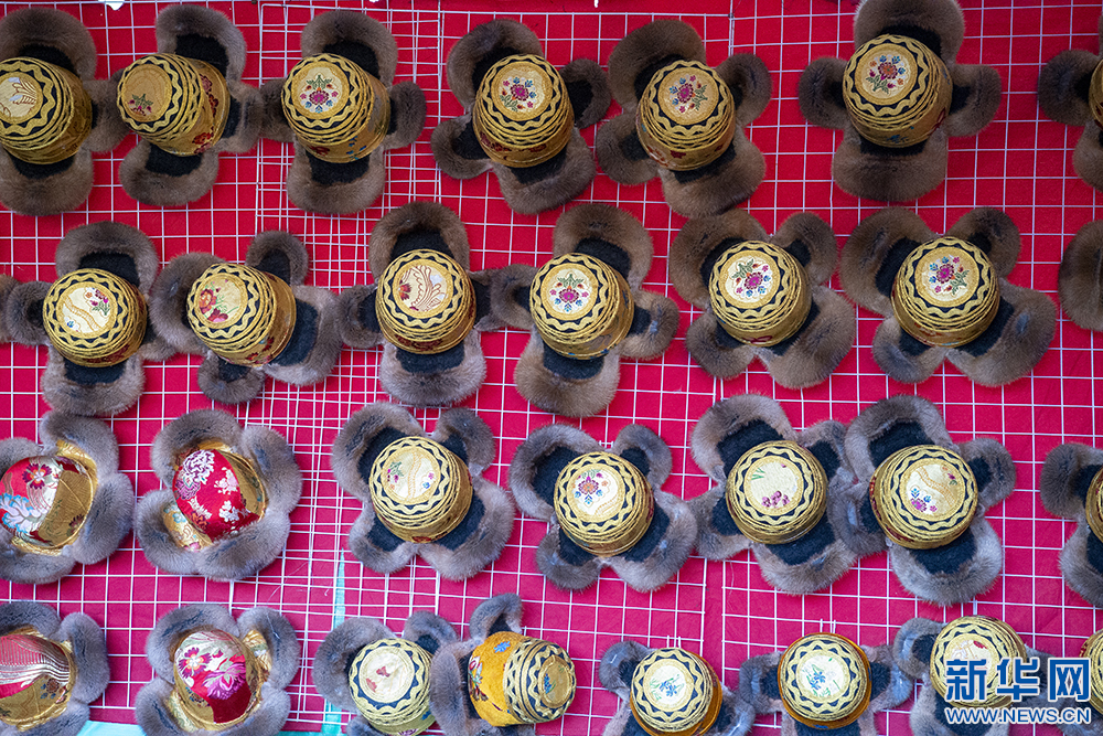 圖為第42屆雅礱物資交流會(huì)上展示的金絲藏帽(12月3日攝)。新華網(wǎng) 旦增努布 攝