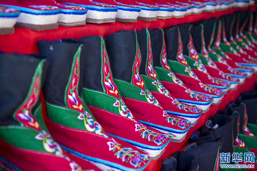 圖為第42屆雅礱物資交流會(huì)上展示的藏靴(12月3日攝)。新華網(wǎng) 旦增努布 攝