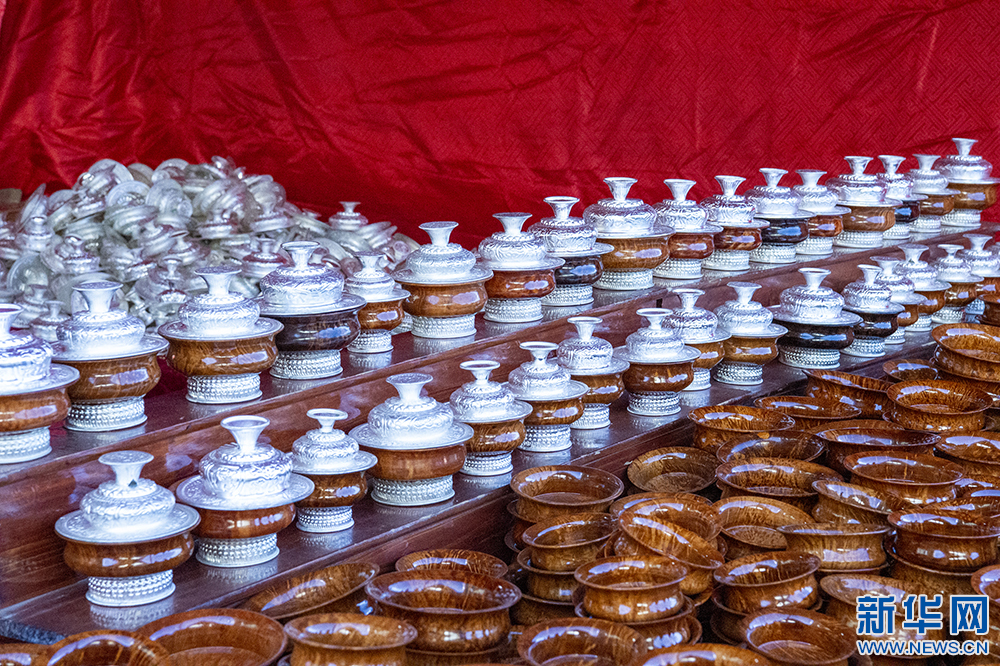 圖為第42屆雅礱物資交流會(huì)上展示的木碗(12月3日攝)。新華網(wǎng) 旦增努布 攝