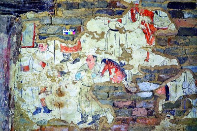 青海烏蘭泉溝一號(hào)大墓的壁畫(huà)——儀衛(wèi)圖(局部)。中國(guó)社會(huì)科學(xué)院考古研究所、海西州民族博物館供圖