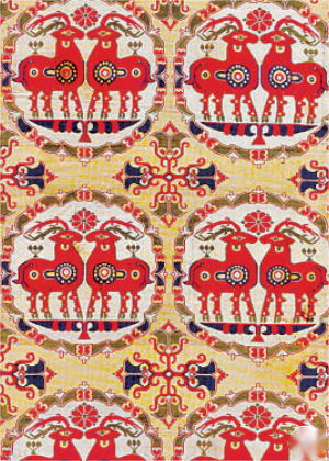 青藏高原北部絲綢之路沿線出土的吐蕃時(shí)期中亞風(fēng)格的絲綢。瑞士阿拜格基金會(huì)供圖