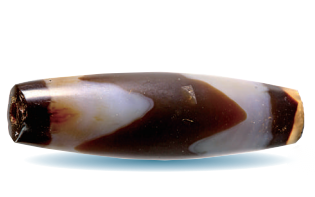 西藏阿里曲踏墓地出土的蝕花瑪瑙珠。中國(guó)社會(huì)科學(xué)院考古研究所、西藏自治區(qū)文物保護(hù)研究所供圖