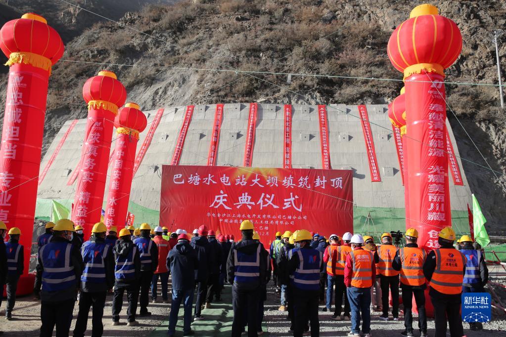 圖為巴塘水電站大壩填筑到頂儀式。(受訪者供圖)