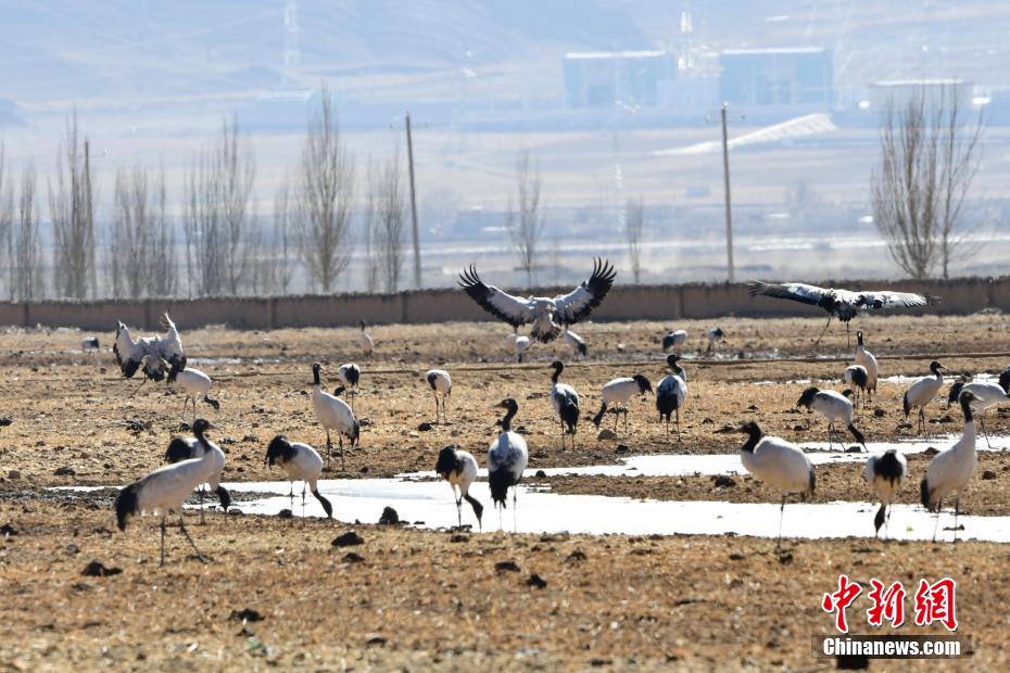 每年的10月底,成群的黑頸鶴飛到西藏拉薩市林周縣越冬,在拉薩市林周縣周邊的湖泊濕地度過(guò)5個(gè)月的“閑云野鶴”生活,次年三四月份再飛向藏北草原繁殖。黑頸鶴是世界上唯一一種高原鶴類(lèi)。具有足長(zhǎng)、喙長(zhǎng)、頸長(zhǎng)的典型涉禽類(lèi)特征,適合在沼澤地里行走。黑頸鶴的頸、尾為黑色,體羽為灰白色。黑頸鶴是國(guó)家一級(jí)保護(hù)動(dòng)物。目前,每年到林周縣越冬的黑頸鶴已達(dá)2000只左右。圖為黑頸鶴在林周境內(nèi)的農(nóng)田里覓食、嬉戲。 貢嘎來(lái)松 攝