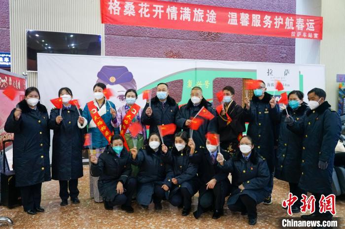 拉薩火車站工作人員介紹, 春運首日,該站預(yù)計發(fā)送旅客4300多人次。在候車廳,車站“天路格?;ā狈?wù)品牌工作人員忙前忙后,幫助旅客出行。此外還有藏漢書法家現(xiàn)場書寫雙語春聯(lián),贈予春運旅客。