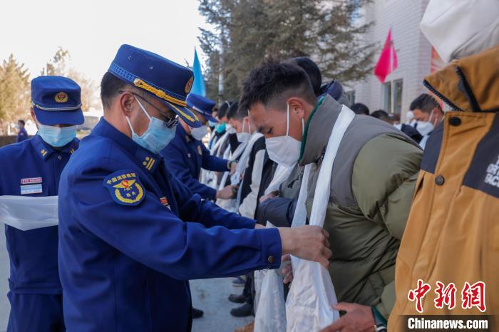 為新入營消防員獻上迎接哈達?!『罱? 攝