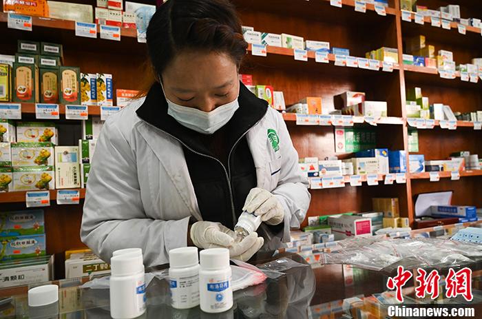 圖為西藏拉薩一藥店內(nèi),銷售員在拆零分裝藥品。 中新社記者 趙朗 攝