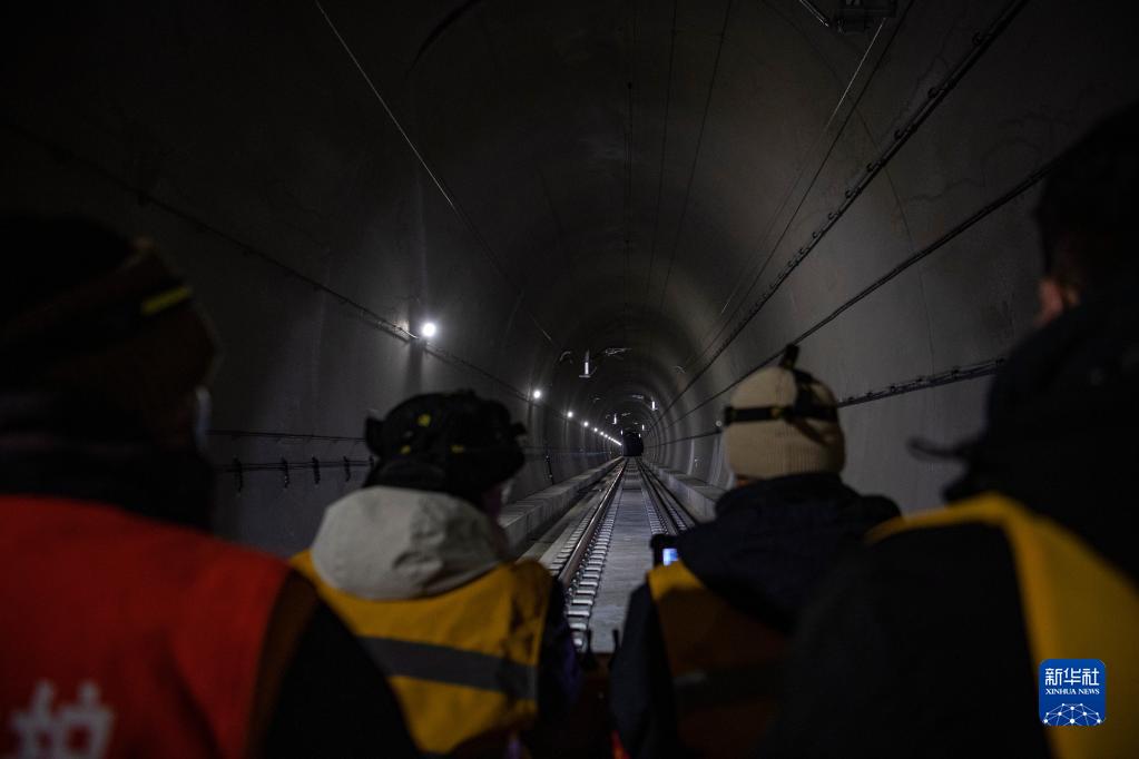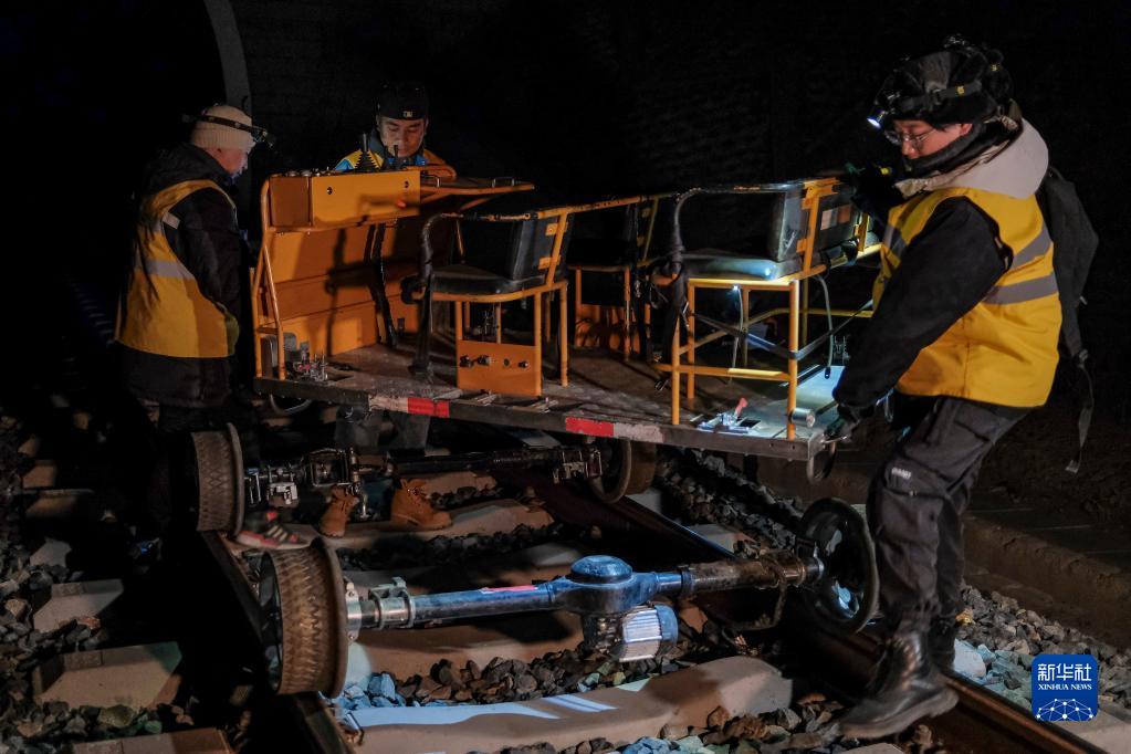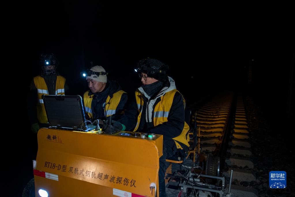 鋼軌探傷隊員在拉林鐵路進(jìn)行鋼軌探傷作業(yè)(1月12日攝)。新華社記者 孫非 攝