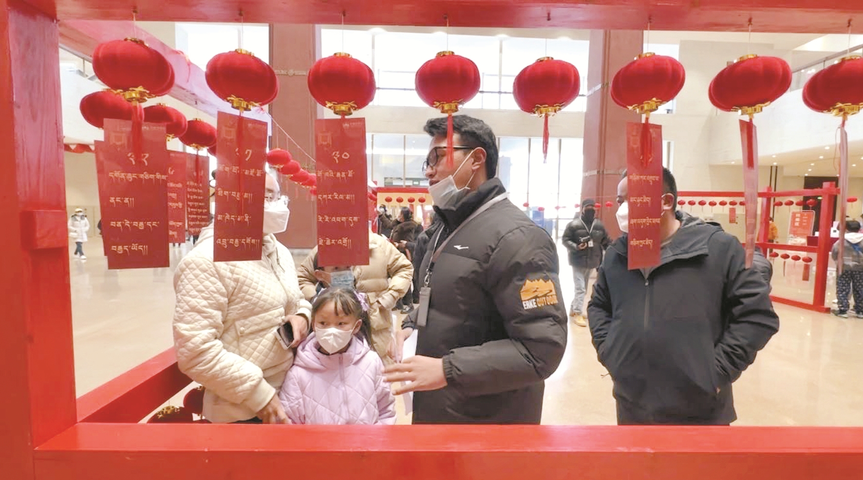 圖為西藏博物館內(nèi)市民游客聚在一起猜燈謎。拉薩融媒記者 滿(mǎn)文妍攝