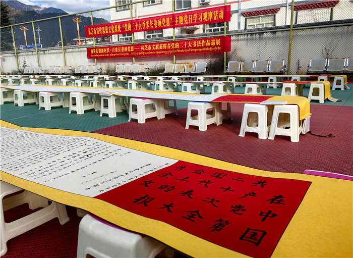 創(chuàng)新載體,全方位宣傳。林芝市統(tǒng)籌各類宣傳資源,線上線下同頻共振,全方位、多角度、寬領域、深層次宣傳黨的二十大精神和區(qū)黨委十屆三次全會、市委二屆三次全會精神,營造學習宣傳的濃厚氛圍。一是新聞宣傳強信心。林芝報、林芝廣播電視臺、西藏林芝網(wǎng)、微林芝等市屬主流媒體紛紛開設《學習貫徹黨的二十大》《新時代新征程新偉業(yè)》等多個專題專欄,持續(xù)推出學習貫徹黨的二十大精神相關報道。截至目前,共刊播《基層宣講員讓黨的二十大精神翩翩飛入百姓家》《軍民共話美好未來 繪就美麗鄉(xiāng)村新畫卷》等相關新聞2500余條。二是社會面宣傳筑同心。采取“屏、板、欄、幅”立體宣傳方式,在全市各級黨政機關和企事業(yè)單位大門LED電子顯示屏以及市、縣城區(qū)主要街道、跨街龍門、出租車頂燈、汽車站等公共場所的宣傳媒介上滾動播放自治區(qū)統(tǒng)一印發(fā)的宣傳標語1.2萬余條次,更新懸掛國旗3.5萬余面,制作發(fā)放宣傳海報1.5萬張、宣傳品2500余個,形成抬頭可見、隨處可學的濃厚社會氛圍。察隅縣上察隅鎮(zhèn)遲巴村村“兩委”和駐村工作隊用彩色粉筆繪制黨的二十大、“新黨章”等主題黑板報,用畫筆向村民傳遞黨的最新政策,深受群眾喜愛。三是網(wǎng)絡宣傳聚民心。充分發(fā)揮新媒體平臺宣傳形式豐富的特點,持續(xù)推送重磅報道和重點文章,策劃打造一批融媒體產(chǎn)品,在全網(wǎng)迅速興起學習宣傳貫徹會議精神熱潮。市委網(wǎng)信辦策劃制作短視頻《學習黨的二十大精神 談心得感悟》、“林芝融媒”抖音號推出《二十大時光》微視頻,將鏡頭對準二十大代表、基層黨員群眾,展現(xiàn)全市干部群眾積極向上的良好風貌。“巴宜融媒”抖音號推出“黨的二十大精神快問快答”系列活動,線上線下聯(lián)動學習,推動黨的二十大精神入腦入心。“察隅融媒”抖音號策劃開展《鄉(xiāng)村振興正當時》黨的二十大主題抖音直播活動,通過網(wǎng)絡直觀展現(xiàn)新時代察隅新農(nóng)村、新氣象、新希望。目前已開展7場直播活動,觀看人數(shù)達10萬人次。四是文藝宣傳暖人心。充分發(fā)揮市、縣(區(qū))、村三級文藝文化團體作用,組織開展“深入生活 扎根人民”“幸福不忘共產(chǎn)黨 陽光路上夢起航”等各類文藝文化活動,精心打造文藝精品力作,用文藝活動、文藝作品溫暖人心。截至目前,各級文藝演出隊開展文藝匯演293場次,參與人數(shù)4.2萬余人次;創(chuàng)作推出音樂作品《沐浴幸福》、攝影作品《我和國旗》、書法美術作品《建功新時代 奮進新征程》、文學作品《黨的光輝照萬家》等文藝作品300余個。波密縣完全小學在崗云杉林景區(qū)組織開展“學習黨的二十大,爭做好少年”采風寫生活動,學生們以文藝創(chuàng)作的形式學習黨的二十大精神,并將學習成果轉(zhuǎn)化到作品中。市民族藝術團以深入挖掘歷史文化、講好紅色故事為主題,籌拍了微電影《立定村屹立的紅旗》。市文聯(lián)書法美術家協(xié)會理事茹輝春同志,在黨的二十大召開后用行、楷兩種書法形式撰寫了黨的二十大報告全文書卷,書卷共有八卷,每卷長30米。市委宣傳部、市文廣局、市文聯(lián)組織市書法美術家協(xié)會開展“禮贊二十大·送福進萬家”林芝市2023年新春書法美術家“深入生活 扎根人民”送祝福和采風活動,共開展送春聯(lián)活動15場次,送出對聯(lián)、福字、掛軸、繪畫等作品8950幅(對),服務群眾6700余人次。