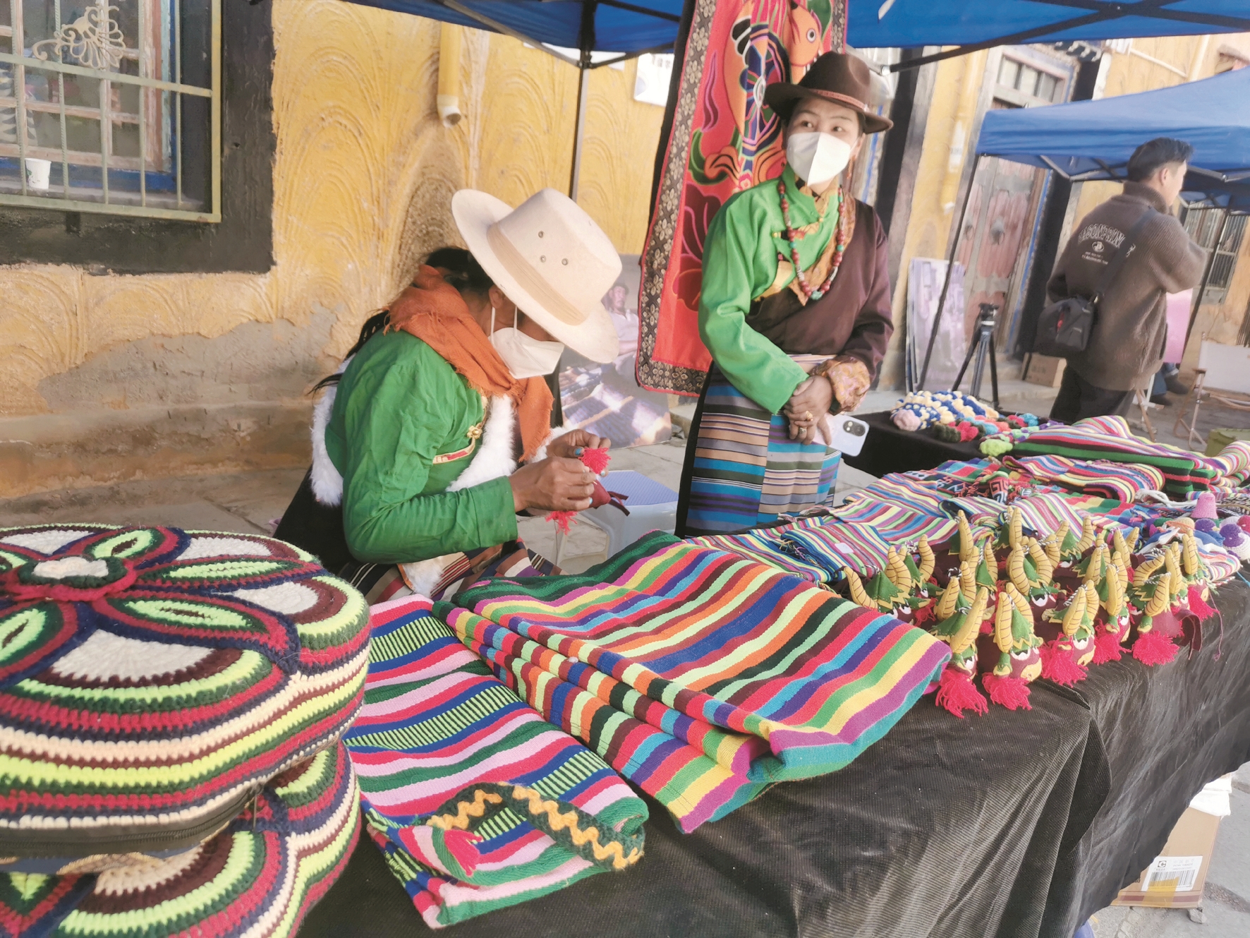 當(dāng)雄縣榮馬鄉(xiāng)手工合作社負(fù)責(zé)人石確說(shuō):“今天把我們鄉(xiāng)手工合作社的民族手工藝品拿過(guò)來(lái)賣,我心里特別高興,我也有信心賣得更多,增加更多的收入?!?/p>
